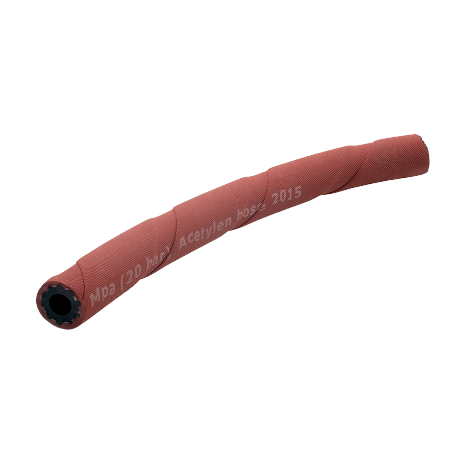 Manguera para acetileno, fabricada con mandrino y acabado abandelado. Muy flexible y agradable al tacto. Cumple con la Normativa Europea EN ISO 3821. 20 bar (2,0 Mpa)